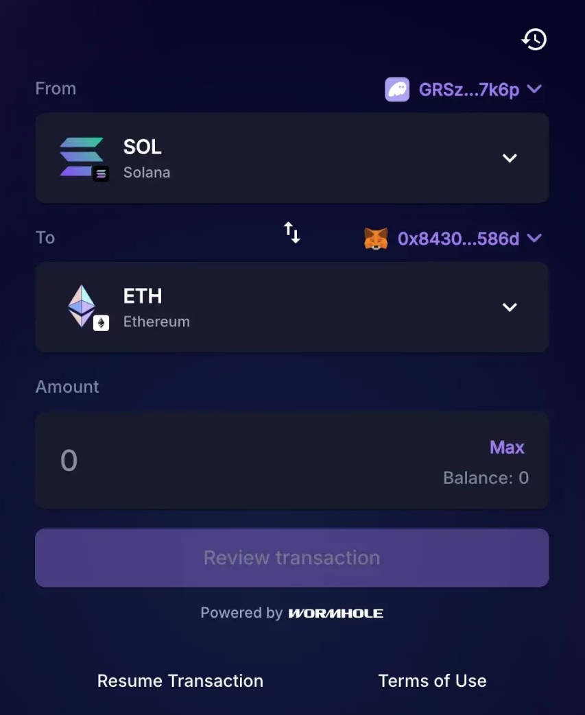 - Connect a Solana wallet (e.g. Phantom) and an Ethereum wallet (e.g. MetaMask) to the Wormhole bridge UI.