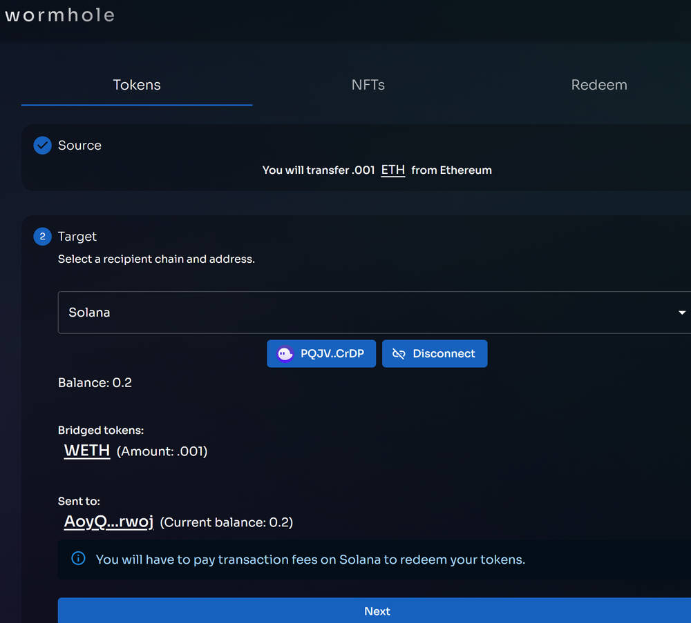 Step-by-Step Example — Bridging through Wormhole