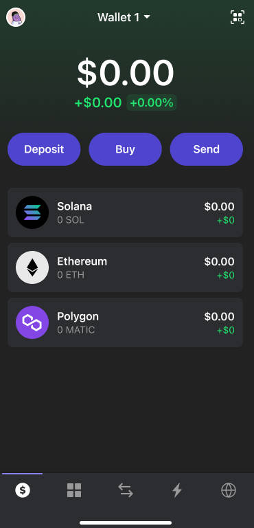 Phantom wallet interface supporting both Solana and Ethereum ecosystems.