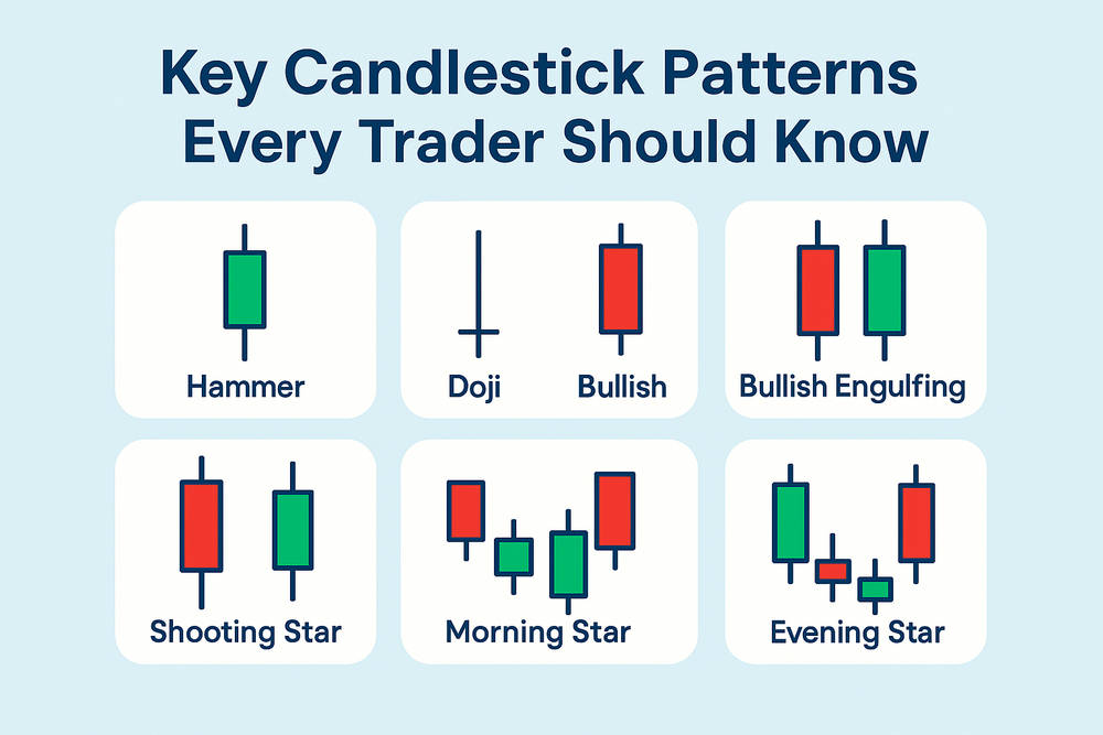 They show price action visually. Cheat sheets typically list bullish and bearish patterns like Doji, Hammer, Shooting Star, Engulfing, and Morning Star, each indicating market sentiment.